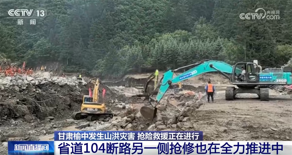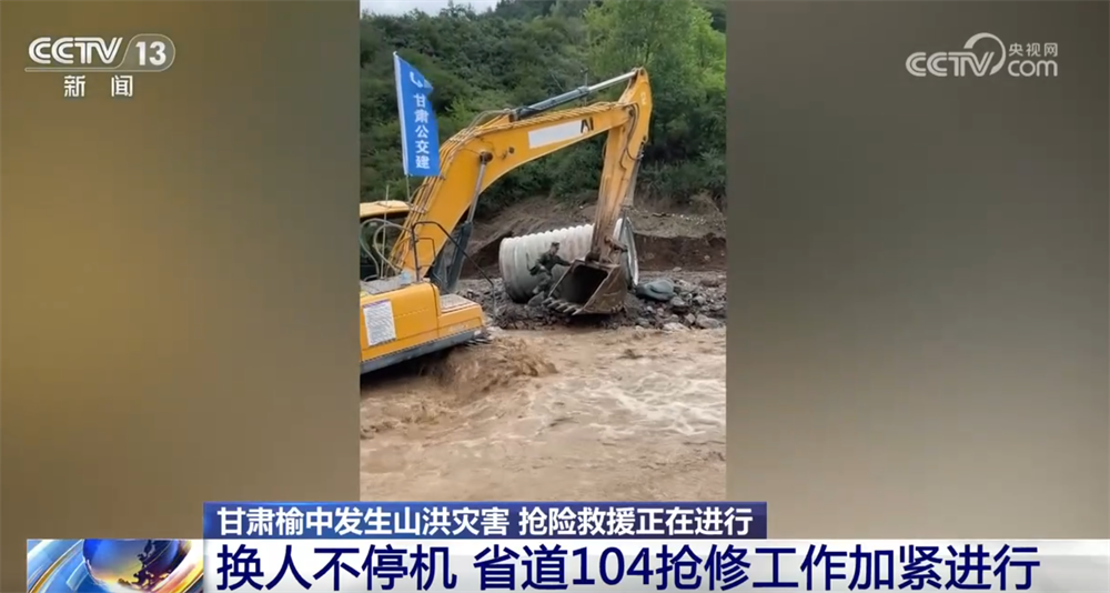 甘肃榆中:省道104断路另一侧抢修也在全力推进中