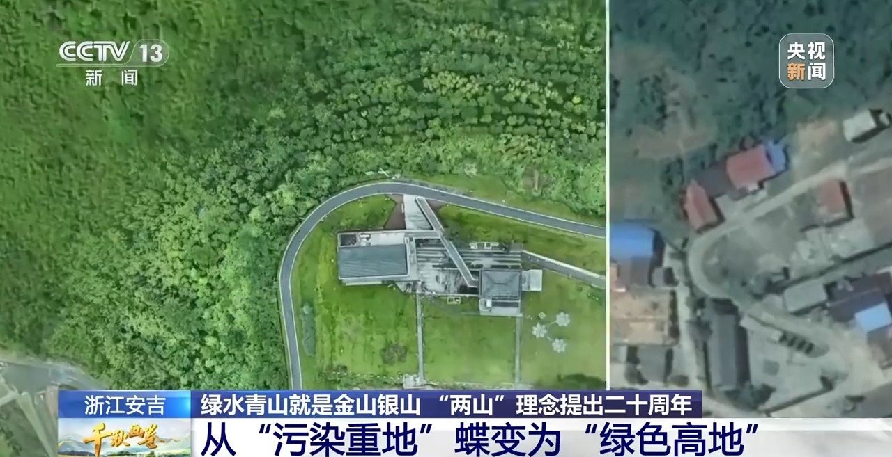 卫星从太空捕捉到更多变化。二十年前,群山间,遍布着70多处矿区和水泥厂。如今,高污染高排放的化工厂不见了,变身零碳乡村图书馆和展览馆,全年吸引游客超120万人次,一年新增生态价值3500多万元。咖啡在高峰时一天能卖出8000多杯。