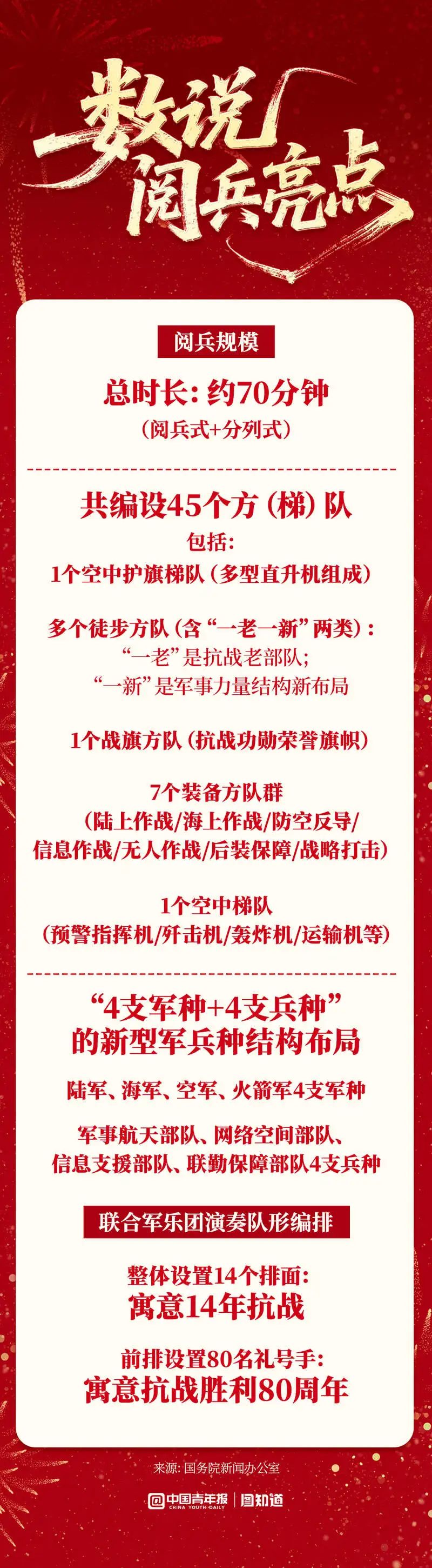 联合军乐团团长黄艳辉介绍,联合军乐团是以解放军军乐团为主体,从全军各部队遴选抽调成员组成,达到了上千人,也是新中国成立以来规模最大的军乐团。为了纪念中国人民抗日战争暨世界反法西斯战争胜利80周年,本次阅兵除了带来大家耳熟能详的乐曲,联合军乐团还将演奏数首全新曲目。