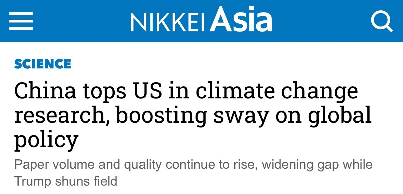《日经亚洲评论》22日发布的一篇文章指出,中国在2023年发表的气候变化研究论文数量超过了美国,并在次年扩大了领先优势。这一趋势凸显了中国全球影响力的持续增长,与此同时,美国却在逐渐退出这一领域。
