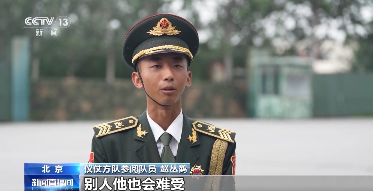 仪仗方队受阅队员 赵丛鹤:其实当你难受的时候,别人他也会难受,像这个时候我们比拼的就不是身体素质了,我们比拼的是意志力。