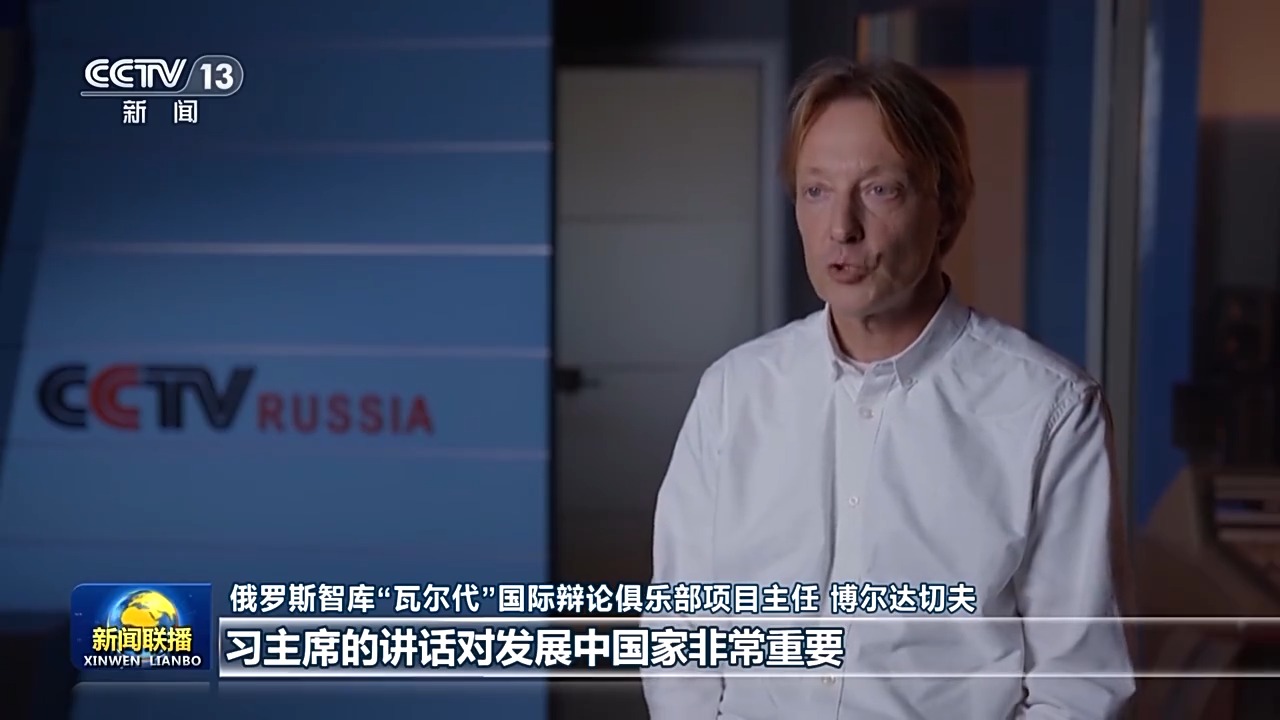俄罗斯智库“瓦尔代”国际辩论俱乐部项目主任 博尔达切夫:习主席的讲话对发展中国家非常重要,当前的动荡形势给发展中国家带来挑战,只有开放合作的国际环境,才有助于世界各国的发展,当下我们正处于历史的转折点,迫切需要全球治理倡议,这一倡议是对全球的重大贡献。