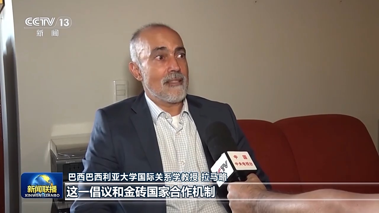 巴西巴西利亚大学国际关系学教授 拉马略:习近平主席提出的共建“一带一路”倡议非常积极,这一倡议和金砖国家合作机制为各国提供了新的合作途经,使他们能够更协调地应对压力,金砖国家合作机制不仅对全球南方国家有益,对全球同样重要,有助于实现共赢,这就是它的重要性所在。
