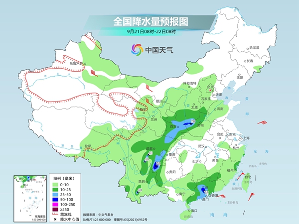 今明两天(9月21日至22日),华西秋雨再度发展,四川、陕西等地部分地区有暴雨,需注意防范连续降雨可能引发的次生灾害。此外,今年第18号台风“桦加沙”23日将进入南海海域,华南多地再迎强风雨天气,公众请关注临近预报信息,及时做好台风防御措施。
