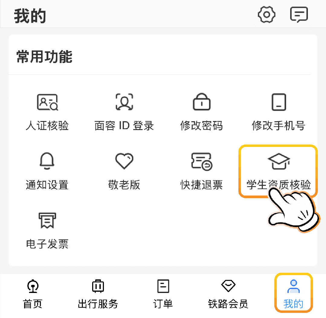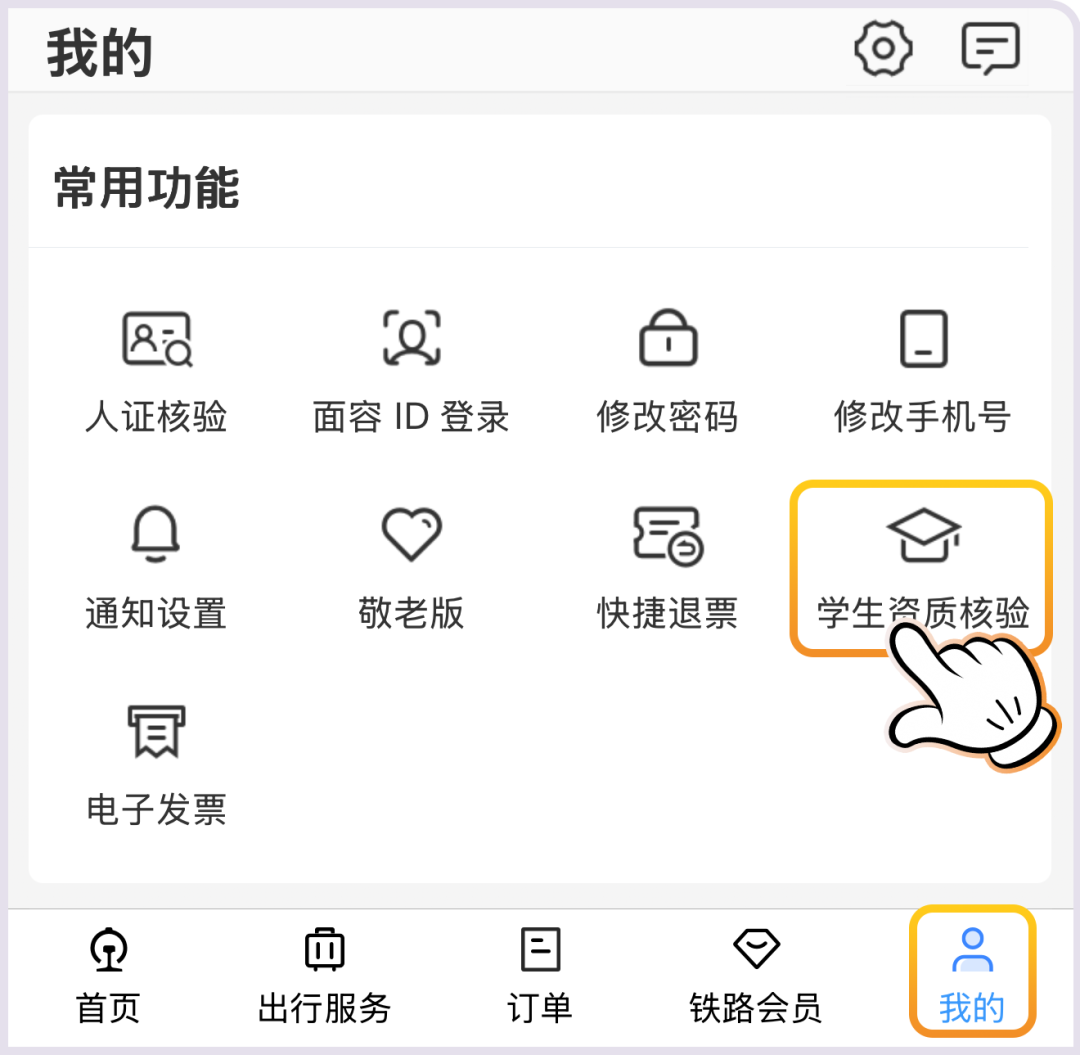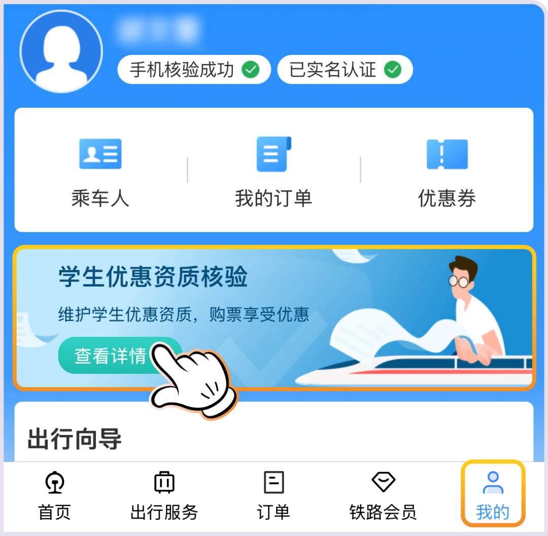 打开铁路12306 App,进入学生优惠资质信息页面,有如下两种方式: