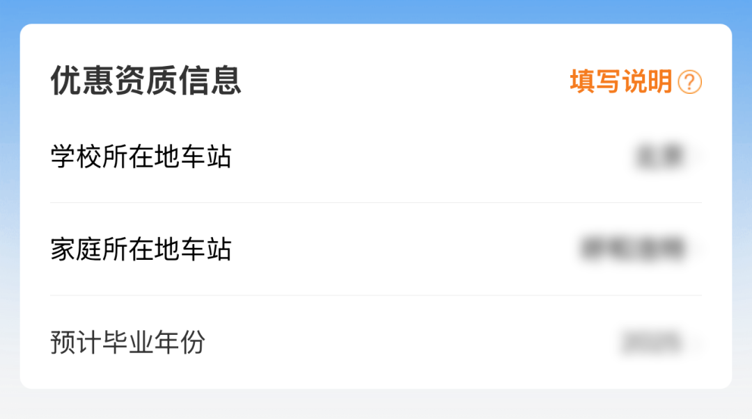 建议大家填写学校、家庭所在地的大型车站。在填写优惠区间时,应填写为12306网站车站名称,而非所在地的地名。