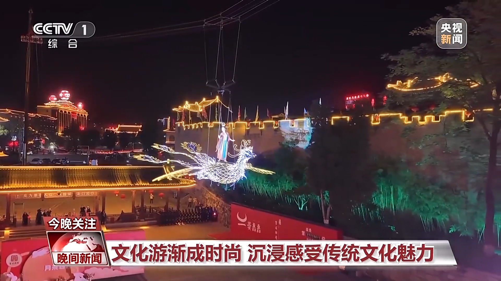 这个假期,各地依托地域文化特色打造的文化游,吸引市民游客沉浸式感受传统文化的魅力。山西晋城推出了“嫦娥奔月”“凤凰飞天”等空中表演,并根据明清古堡建筑的特色,推出实景剧,还现场发放手工月饼,将“静态观赏”升级为“沉浸式体验”。