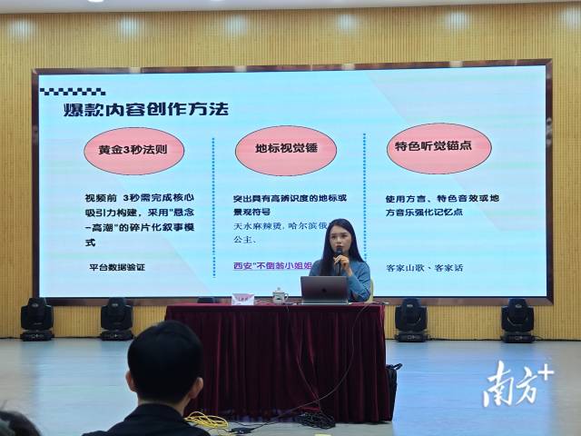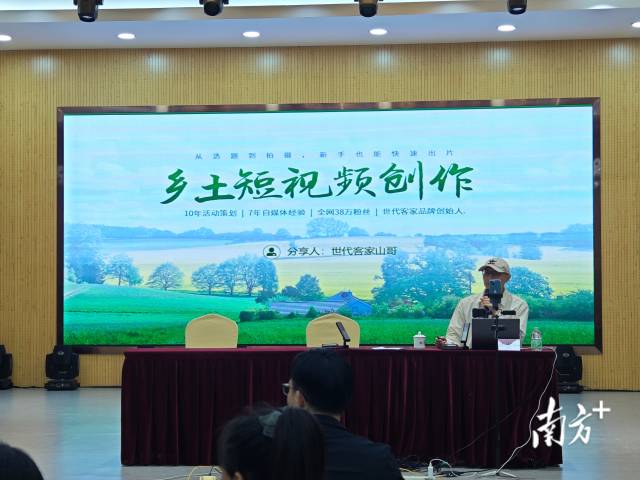 课堂培训中,三位自媒体代表各自带来满满干货:@小肥颖儿以《新媒体创作干货分享》为主题,分享了内容策划、平台运营等方面实用技巧;吴宇嘉讲授《梅州本土素材挖掘与传播策略探讨》,引导学员思考如何发现并有效传播家乡的独特魅力;陈咨丞讲授《开启乡土短视频创作之路》,为学员们梳理了从零开始进行短视频创作的思路与方法。