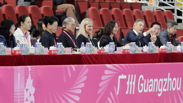 11月10日上午,国际奥委会主席考文垂一行到访位于南沙体育馆的十五运会武术套路项目竞赛现场。在观看男子剑术和女子刀术比赛后,考文垂获赠一份来自广州南沙的城市礼物——香云纱披肩,现场表露欣赏与喜爱之情。行程结束前,考文垂接受了南方+采访。