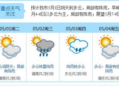 - 今天是5月1日劳动节,也是五一小长假的最后一天,天气怎么样呢?据市气象台的预测,今天我市以阴天间多云天气为主,局部仍有短时... 2018-05-01 09:34 分享