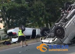 突发!环常南路上演“大片”,两车四脚朝天“躺”在马路上
