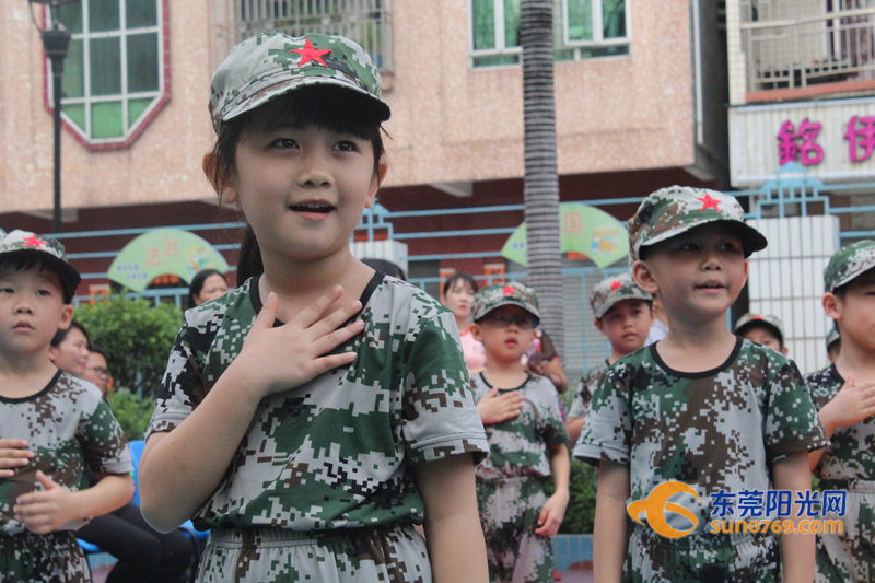 东莞阳光网讯 为了加强幼儿的组织纪律性,磨练吃苦耐劳的精神,企石中心幼儿园组织大班幼儿参加综合素质教育训练活动,从小学习军人意志。