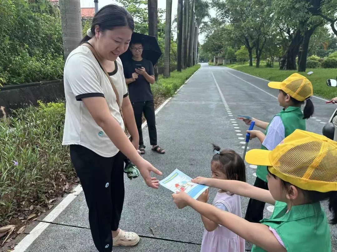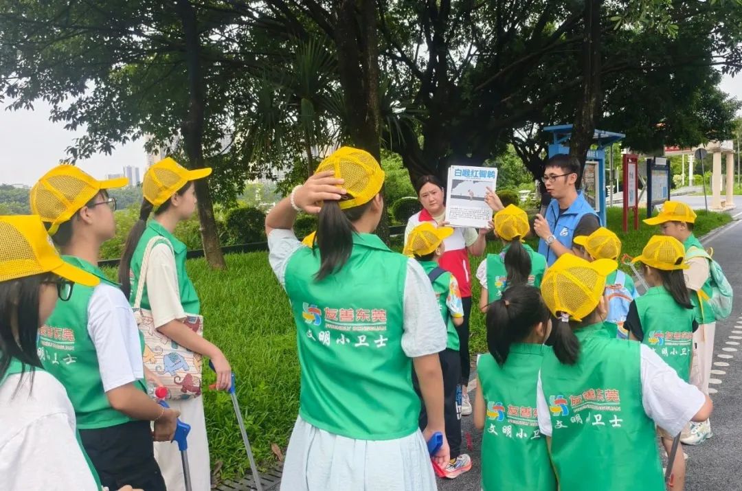 培训结束后,“小候鸟”正式以“文明小卫士”的身份投身实践。他们手持工具清理草丛里的塑料瓶盖、烟头、枯枝落叶等,身上的绿马甲成了街头流动的文明标识,还通过向市民派发“垃圾不落地”“文明遛狗”等宣传材料,用童言童语发出守护洁净家园、文明养犬的社会号召,以“小手拉大手”的形式增强文明行为宣传的亲和力和感染力。