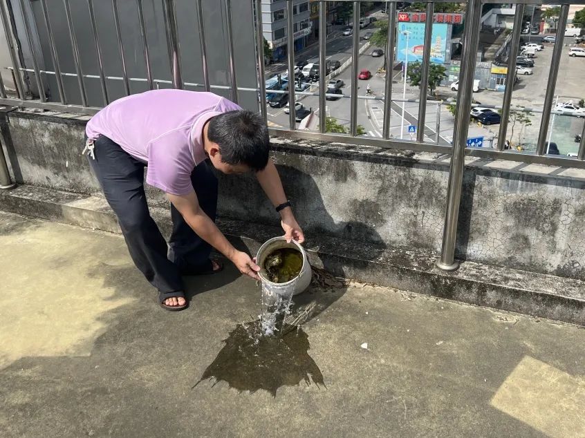 此外,工作人员在入户检查中发现,部分居民对蚊媒传染病防控意识不足,住所存在积水容器未及时清理、鱼池未完成消杀等问题。工作人员发现后,立即进行现场宣教,耐心讲解蚊媒传染病的危害及预防措施,并协助居民清理积水容器,完成消杀工作,保障居民居住环境的卫生安全。