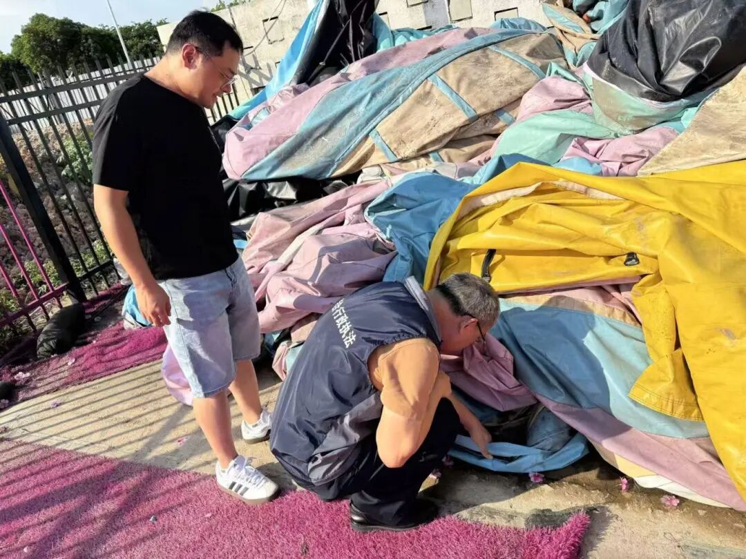9月1日,镇执法队执法人员在对相关场所进行执法检查时发现,某游乐场所的角落堆放了一堆闲置的充气城堡,在闲置充气城堡中执法人员发现了多处积水,且在积水处孳生了多个蚊子幼虫在蠕动。