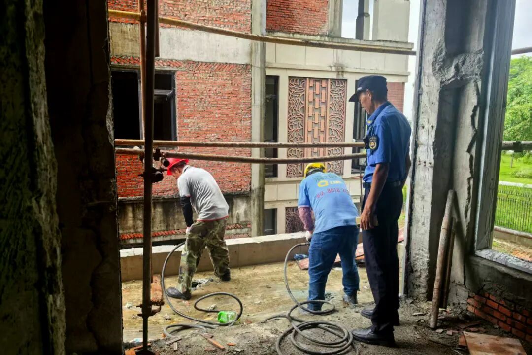 经执法人员前期详细核查,该处别墅业主在未取得《建设工程规划许可证》的情况下,擅自进行两处违法建设。一处在房屋正门违规建设混凝土结构门楼,另一处在房屋侧面搭建混凝土结构建筑物,两处加建物均处于在建状态。其行为严重违反了《中华人民共和国城乡规划法》等相关法律法规,破坏了小区整体规划和风貌。