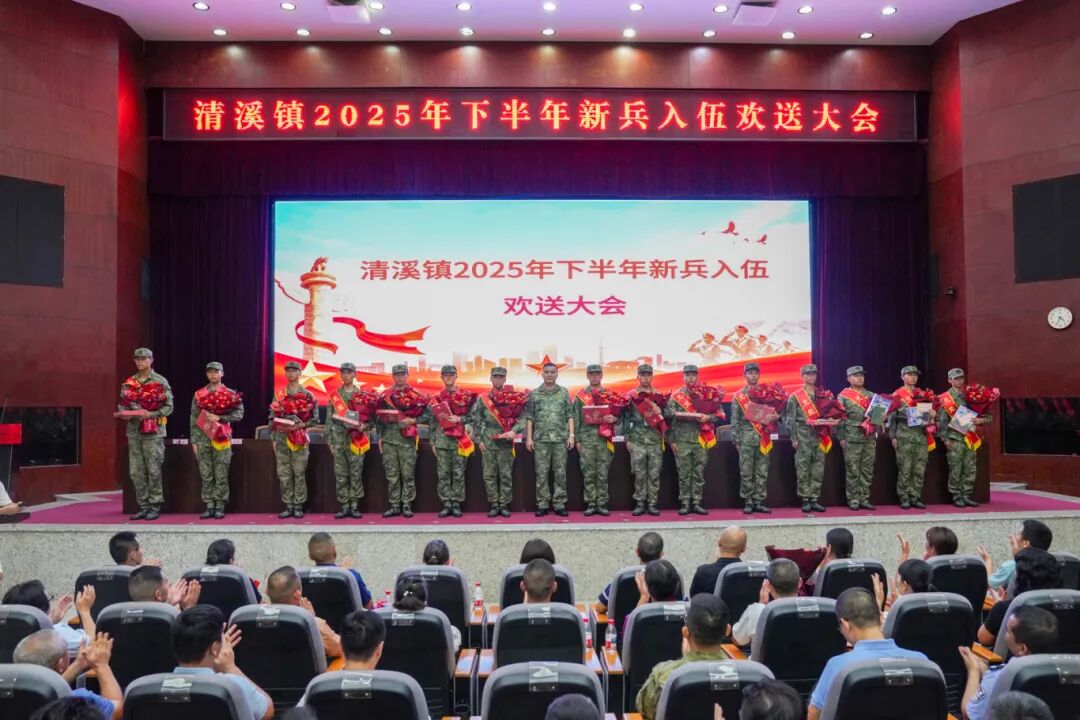 清溪镇委委员、武装部长谢文达代表镇党委、政府向入伍青年表示祝贺,向家属的理解支持、征兵人员的辛勤付出致以敬意。“今年是中国人民抗日战争暨世界反法西斯战争胜利 80 周年。清溪是红色热土,今天的你们,传承了先辈的红色基因,是家庭的荣耀,更是全镇的骄傲!”