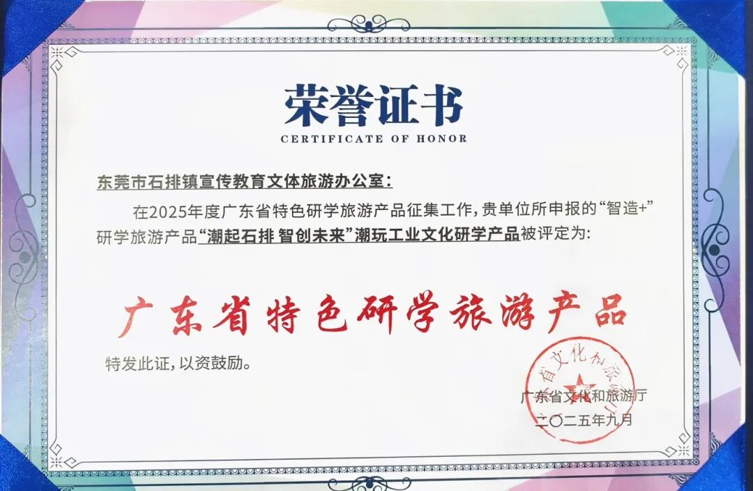 “潮起石排 智创未来”潮玩工业文化研学产品获评2025年度广东省特色研学旅游产品。