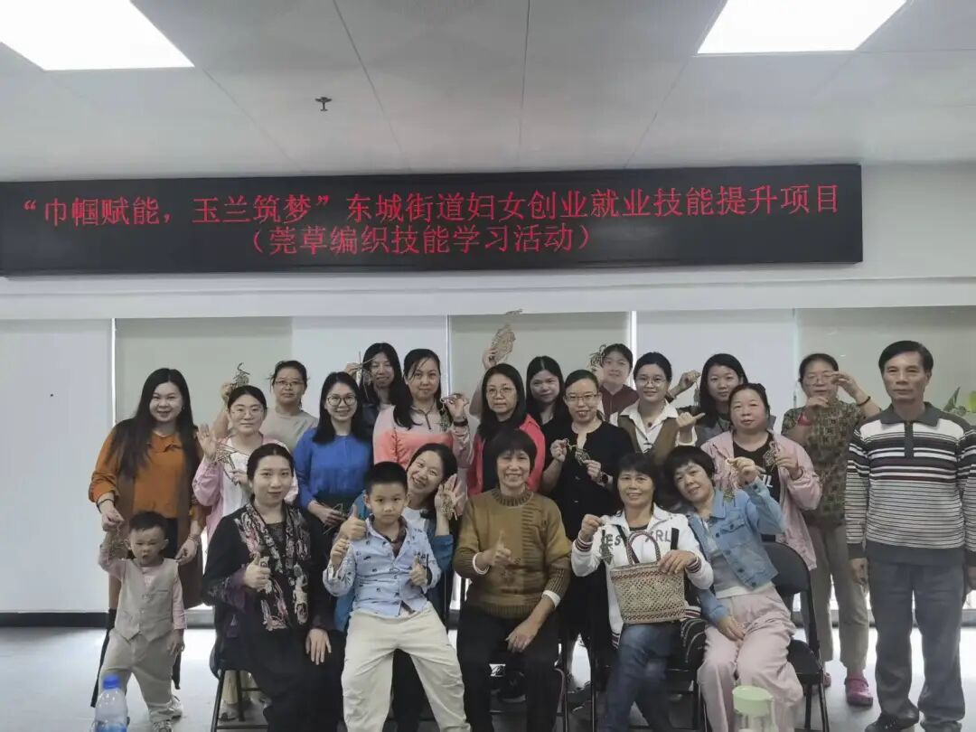 为持续深化巾帼就业创业促进行动,助力妇女创业创新,10月25日,东城街道妇联开展“巾帼赋能,玉兰筑梦”妇女创业就业技能提升项目——莞草编织技能培训活动,邀请莞草编织技艺省级代表性传承人叶小玲老师以东莞特色“烧鹅”为创意灵感,带领20名妇女将非遗莞草技艺与现代生活美学结合,编织出兼具地域特色与实用价值的“烧鹅挂件”,让老手艺在新时代焕发出创业增收的新活力。