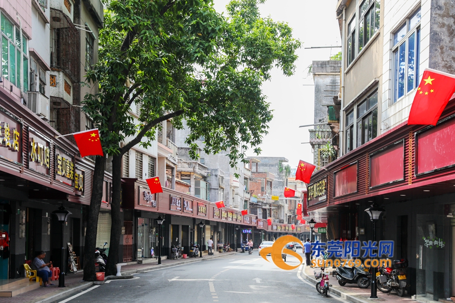 此外,为迎国庆,茶山圩旧街于近日完成旧街店铺招牌美化升级,并挂上国旗营造氛围。
