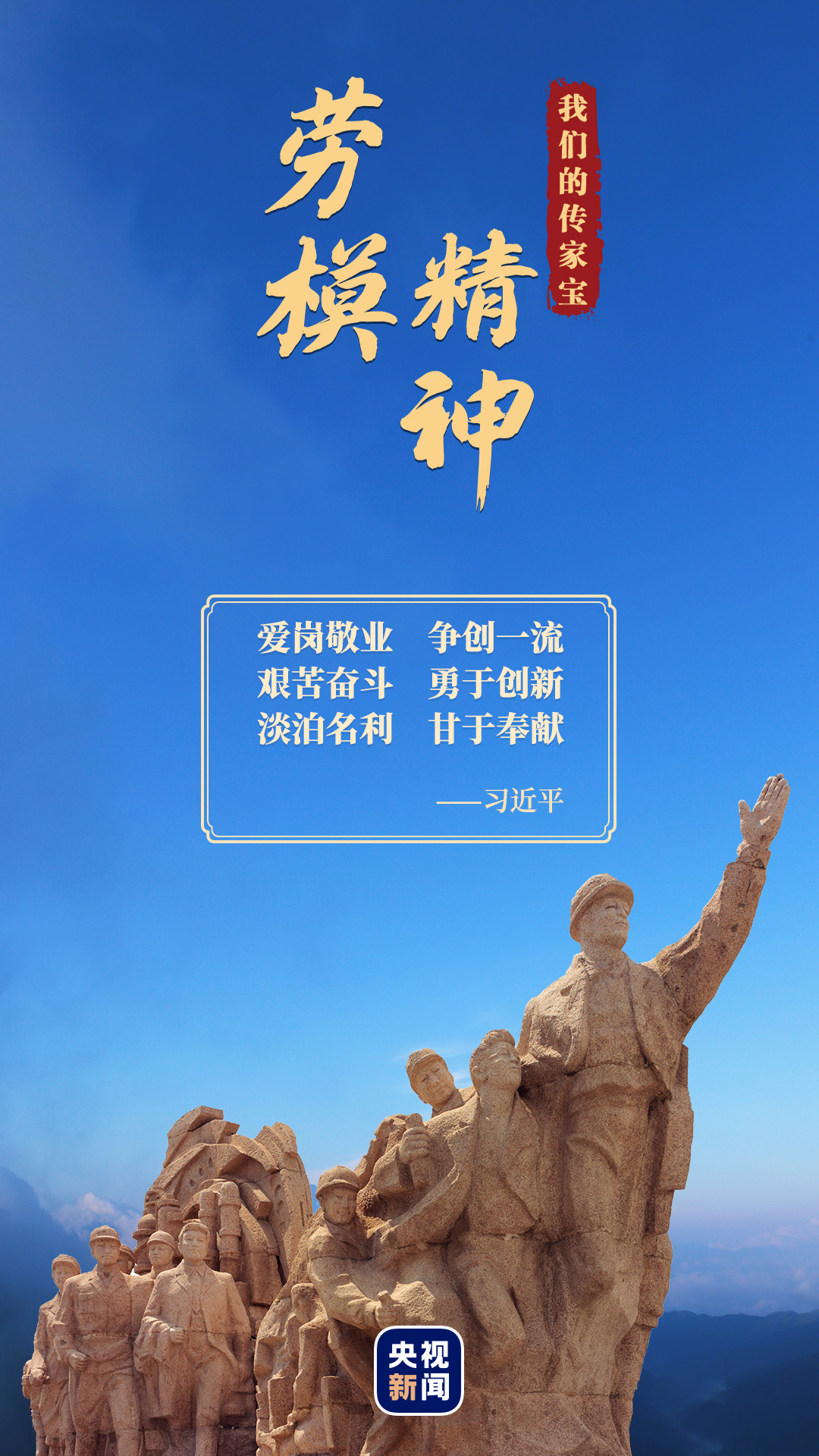 习近平总书记指出,劳动模范是共和国的功臣,要大力弘扬劳模精神。