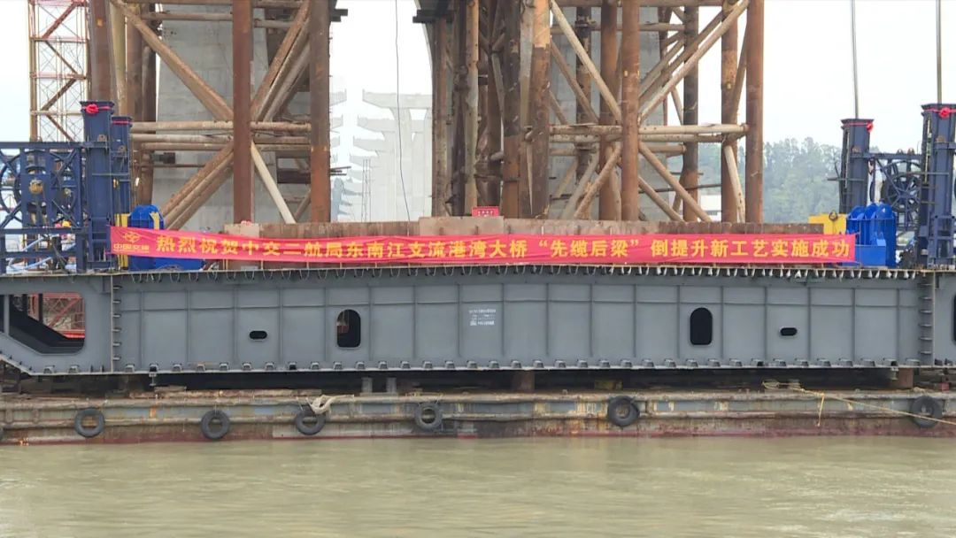 厉害了!11条船保驾护航,国内首个“先缆后梁”主梁倒提升工艺首吊圆满完成!