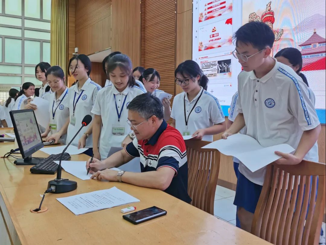 东莞高级中学党委书记、校长卢旭昌以波澜壮阔的百年党史为主线,上了一节题为《站起来 富起来 强起来——中国共产党百年奋斗史》的思政课,并在互动环节欣然提笔给学生寄语,以“生在盛世,不负盛世”“砥砺前行,不忘初心”“为中华之崛起而读书”勉励学生们在百年未有之大变局的形势下,弘扬和践行社会主义核心价值观,勤奋学习,让奋斗点亮青春之路。