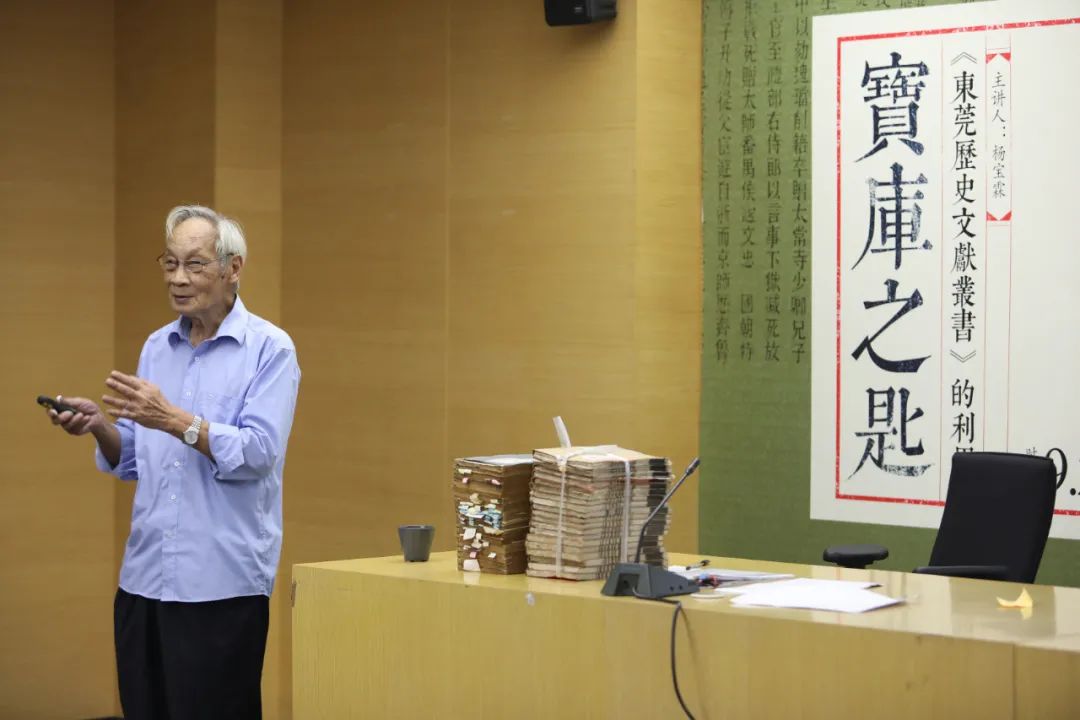 夜幕降临,东莞莞城博厦社区一栋简陋的老宅内,一名白发苍苍的老者正伏案写字,一盏小小的台灯照亮了他的身影。他右侧的凳子上摆了厚厚一叠书,左侧的案台上是各种各样的资料,他的脖子上挂着一条蓝色透明的吸氧管。这是东莞文史泰斗杨宝霖先生,如今即便年逾八旬,每天从早到晚,他依然坚持工作,他还有很多想做未做完的事。