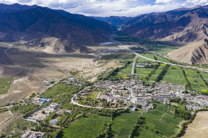 空中俯瞰山南市桑耶镇(6月2日摄,无人机照片)。新华社记者 普布扎西 摄