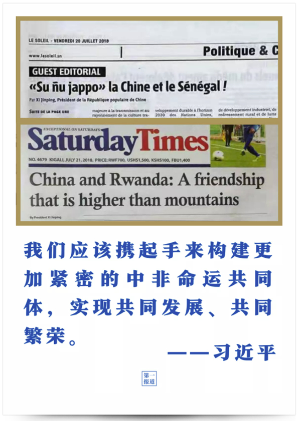 2018年7月,在对塞内加尔和卢旺达进行国事访问前夕,习近平主席在塞内加尔《太阳报》和卢旺达《新时代报》发表署名文章,提及多个中非合作的生动故事。