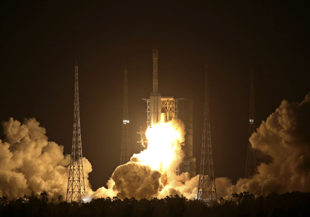 2021年12月23日18时12分,我国在文昌发射场用长征七号改运载火箭,成功将试验十二号卫星01星、02星发射升空。卫星顺利进入预定轨道,发射任务获得圆满成功。新华社发(胡煦劼 摄)