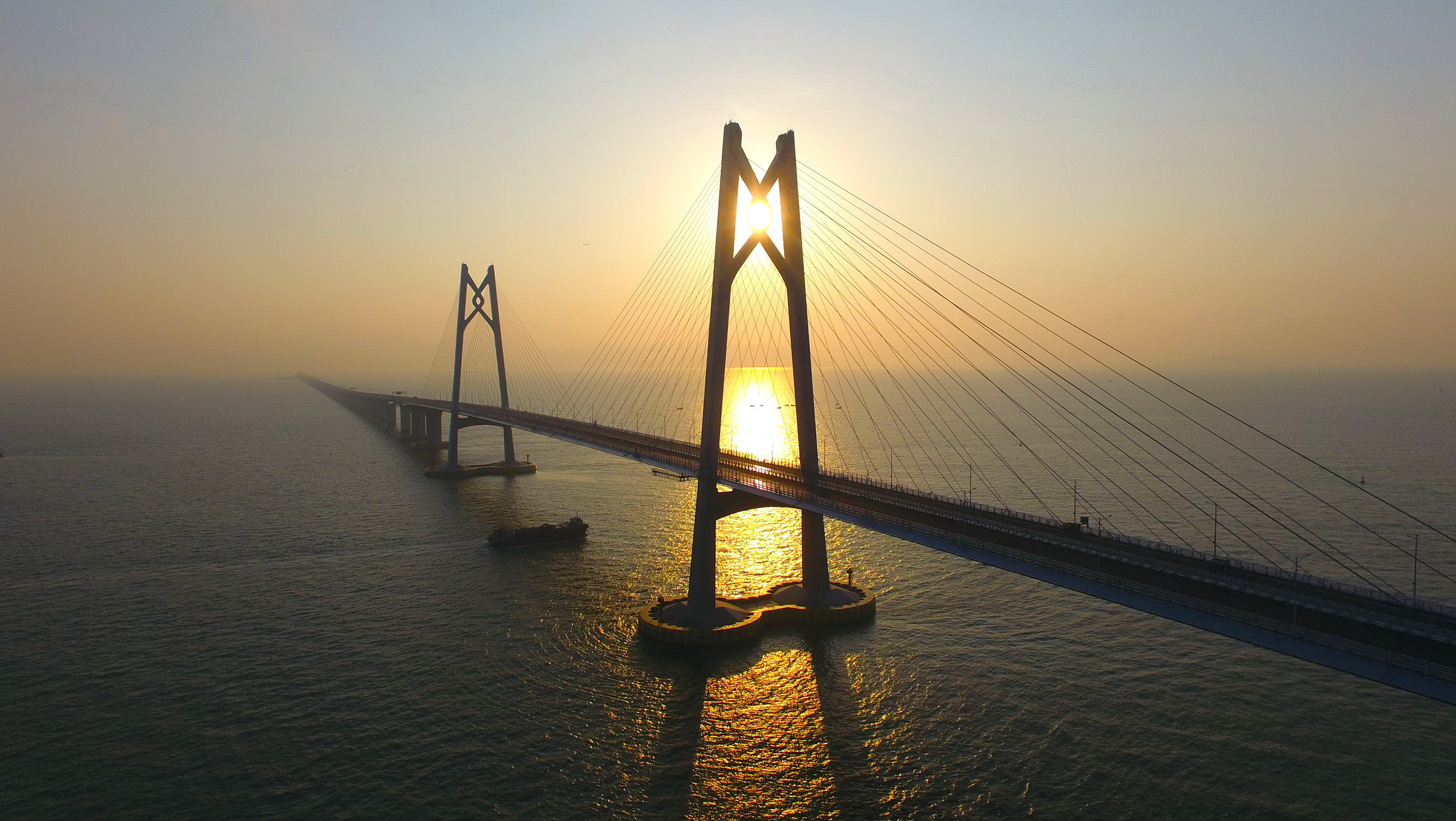 港珠澳大桥跨越伶仃洋,东接香港,西接广东珠海和澳门。