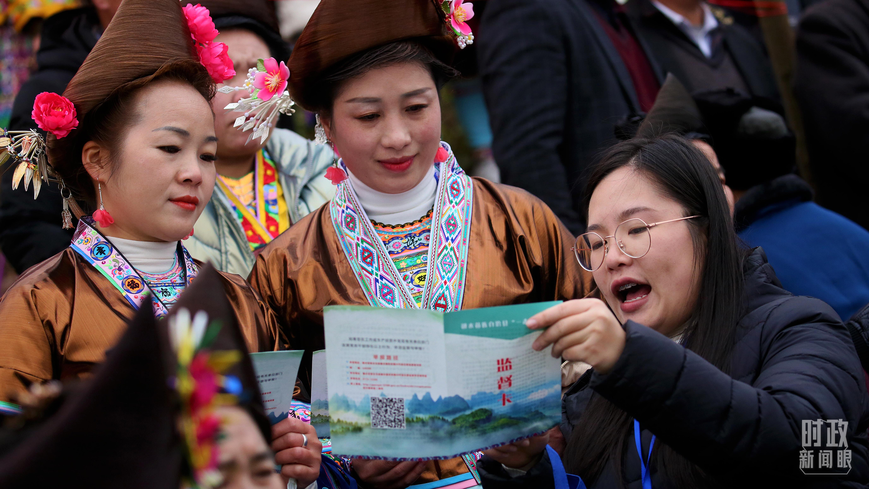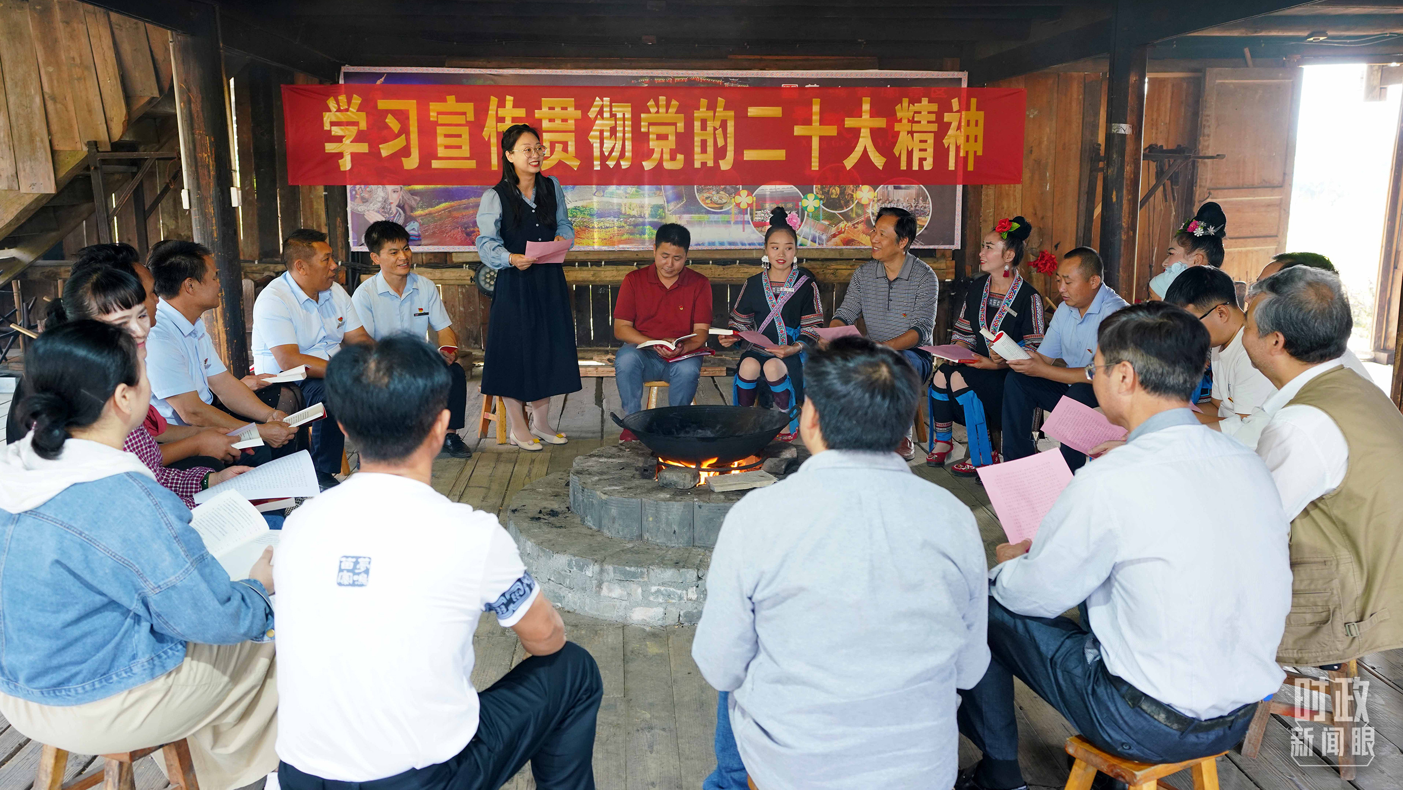 △广西柳州的纪检监察工作人员在当地苗寨与党员干部群众共同学习二十大精神。(图/视觉中国)