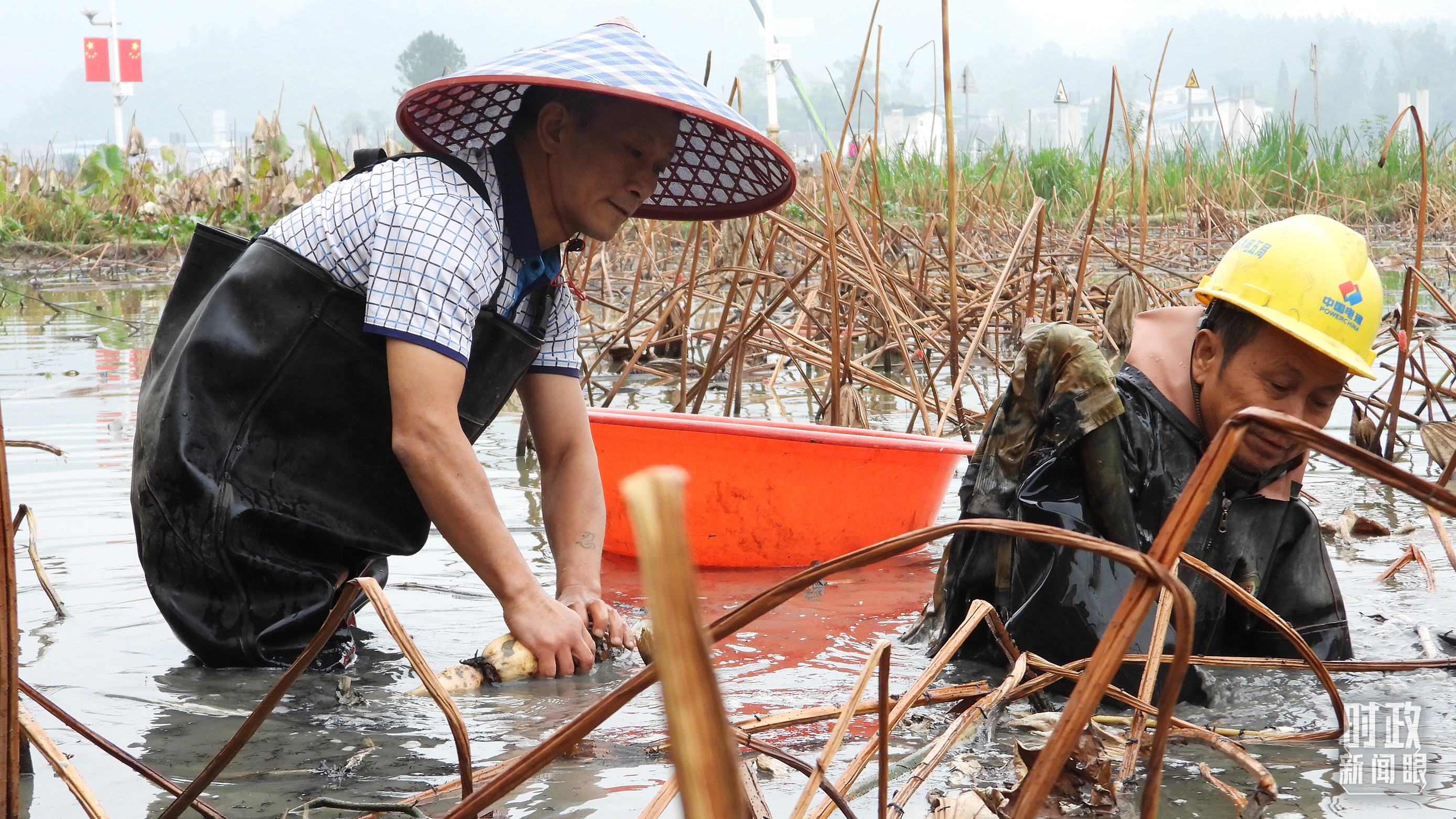 △2022年11月,四川省达州市进入莲藕采挖收获时节,藕农和结对帮扶的县纪检干部正在抢抓农时采挖莲藕。(图/视觉中国)
