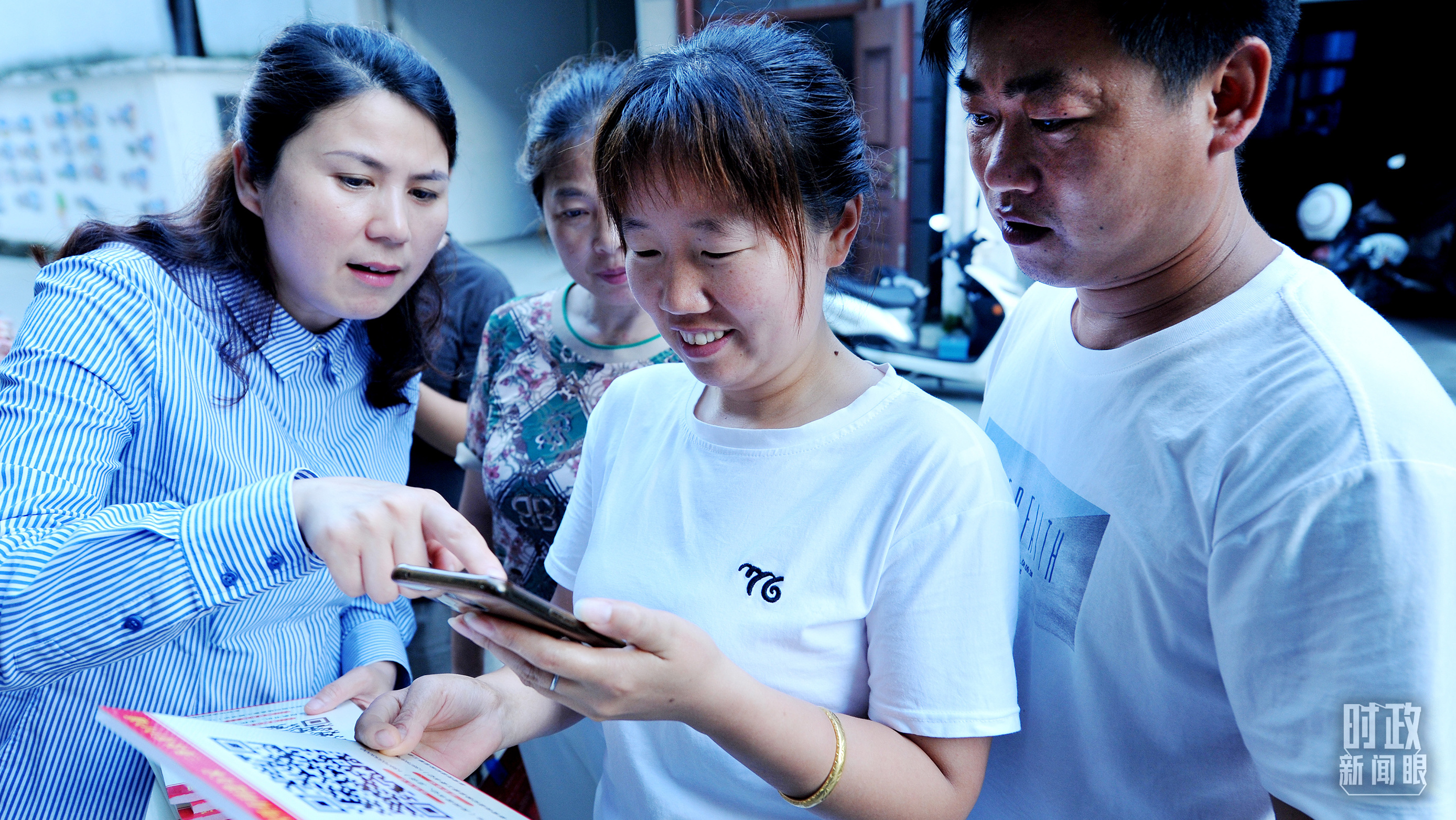 △江西上饶纪检工作人员正在帮助村民使用手机扫描查询村级三务“码”上公开的内容。(图/视觉中国)