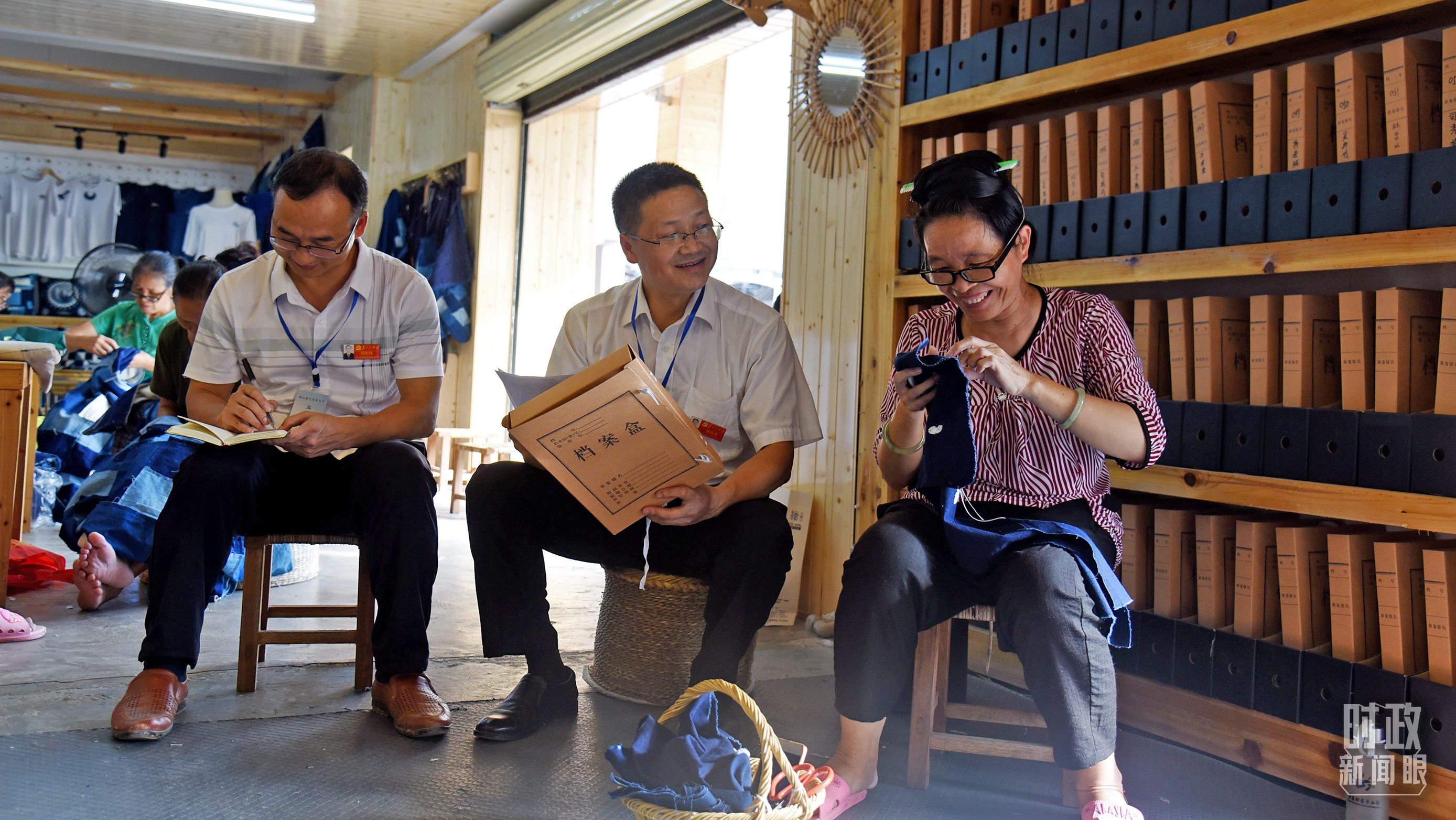 △卧龙社区扶贫车间里,贵州省榕江县纪检工作人员正在了解扶贫惠民政策的落实情况。(图/视觉中国)